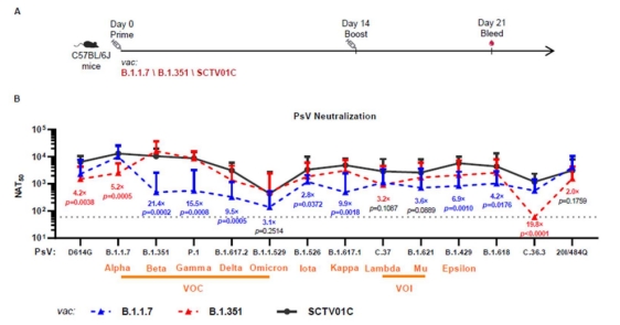 二价新冠疫苗SCTV01C对比单价疫苗的小鼠免疫原性优势