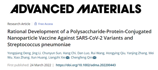 [4]Deng Y, Li J,Sun C, et al. Rational Development of a Polysaccharide‐Protein‐Conjugated NanoparticleVaccine Against SARS‐CoV‐2 Variants and Streptococcus pneumoniae. Advanced Materials,2200443.